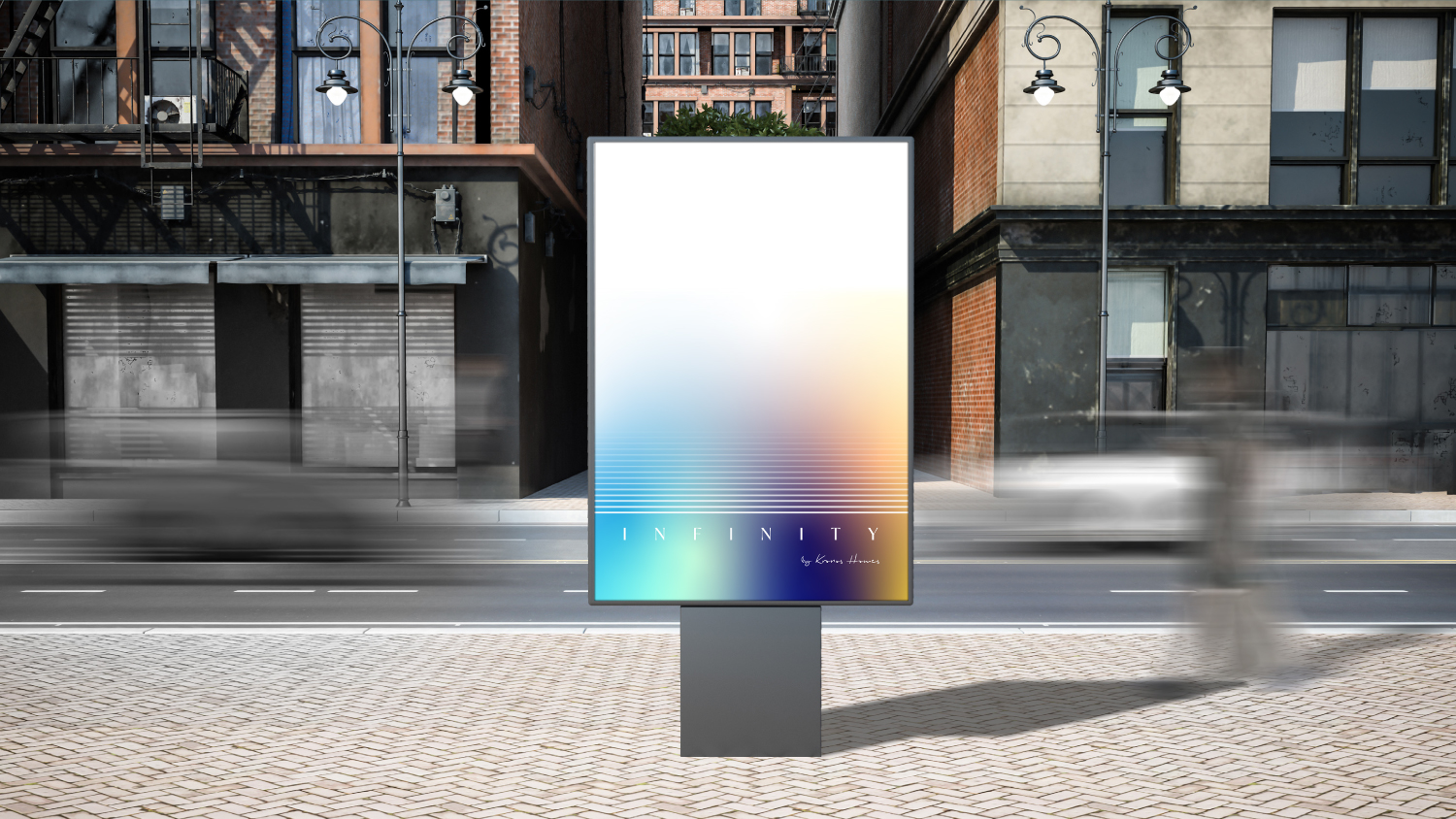 En la propuesta se emplea una tipografía de palo seco muy equilibrada y limpia. Sobre ella, líneas rectas en posición horizontal se suceden una tras otra hasta que desaparecen.